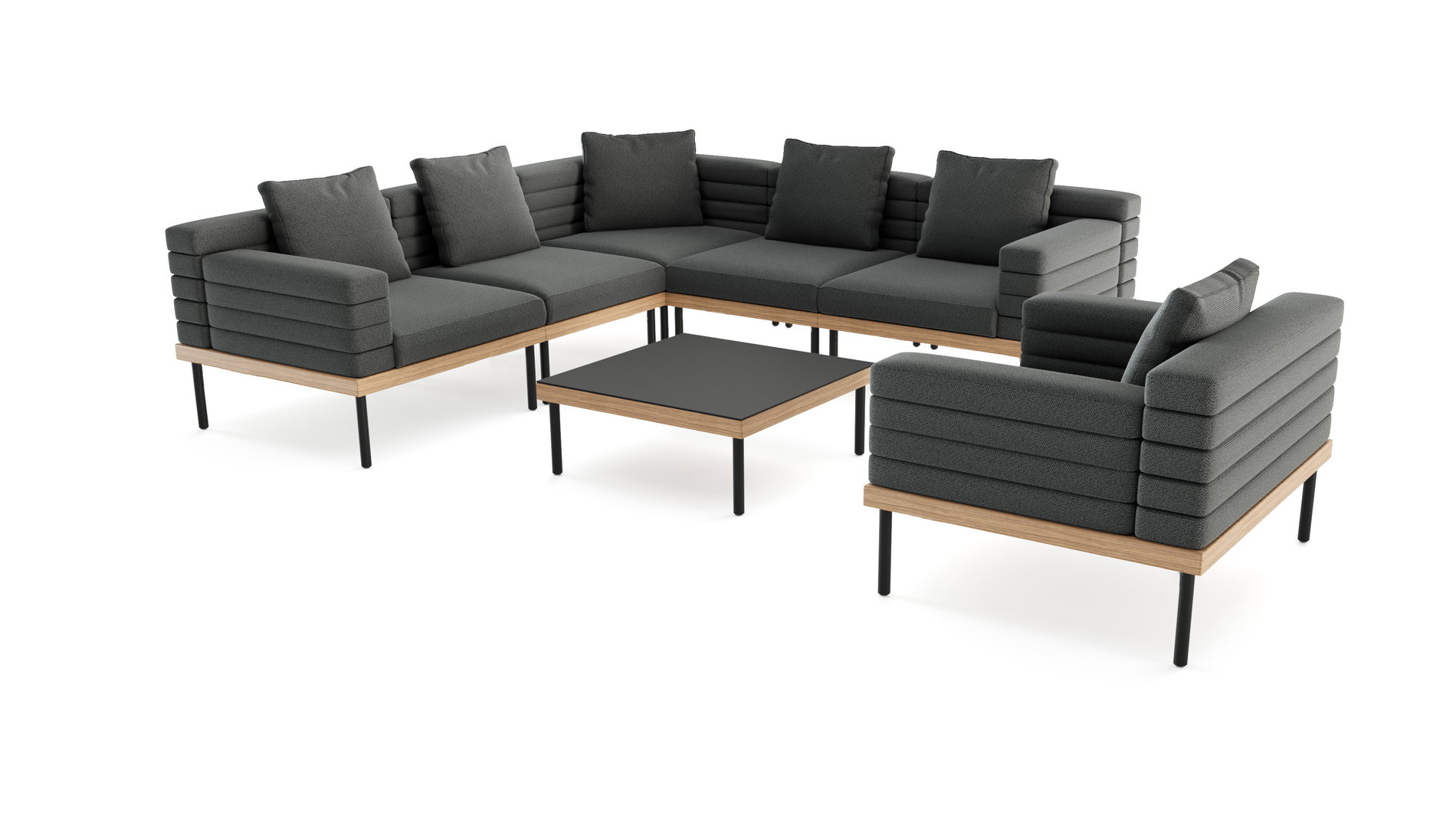 Revêtu du tissu Obsidian d'un noir profond, le Luma Lounge Light Plus apporte une touche moderne et élégante à tout environnement extérieur. La surface mate veloutée rencontre des lignes épurées – réduites, mais jamais froides. Les modules combinables librement vous offrent une liberté de conception : de l'îlot de détente aérien au salon convivial pour les longues nuits d'été.