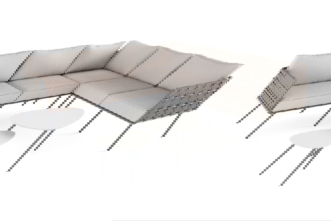 Couleur gris-brun Coussins et matelas coussins très confortables, épaisseur coussins d'assise 12 cm, mousse synthétique, coussins dossier rembourrés, mousse synthétique Poids Ensemble canapé fauteuil env. 40 kg Matériau Aluminium, Corde Montage assemblage nécessaire Plateau de table aluminium, dépoli, gris de soie, épaisseur 4 mm, aluminium thermolaqué Contenu de la livraison 1x table basse, 1x fauteuil d'angle, 1x fauteuil d'angle latéral gauche, 1x fauteuil d'angle latéral droit Nombres de places assises jusqu'à 5 Matériau extérieur 100% fait main, uni, teint dans la masse, séchage rapide, 100% corde en olefin, couleur gris-brun, largeur 50 mm Structure aluminium thermolaqué, solide, inoxydable, imperméable, épaisseur jusqu'a 1,5 mm Housse beige, 100% olefin, déhoussables, lavables à 30°C, solide, hautement résistant, fermeture-éclair sous patte, multicolore, imperméable, teint dans la masse Qualité Poids maximal jusqu'a 120 kg par fauteuil, déperlant, facile à entretenir Réf. d'article 23515 Consignes de sécurité