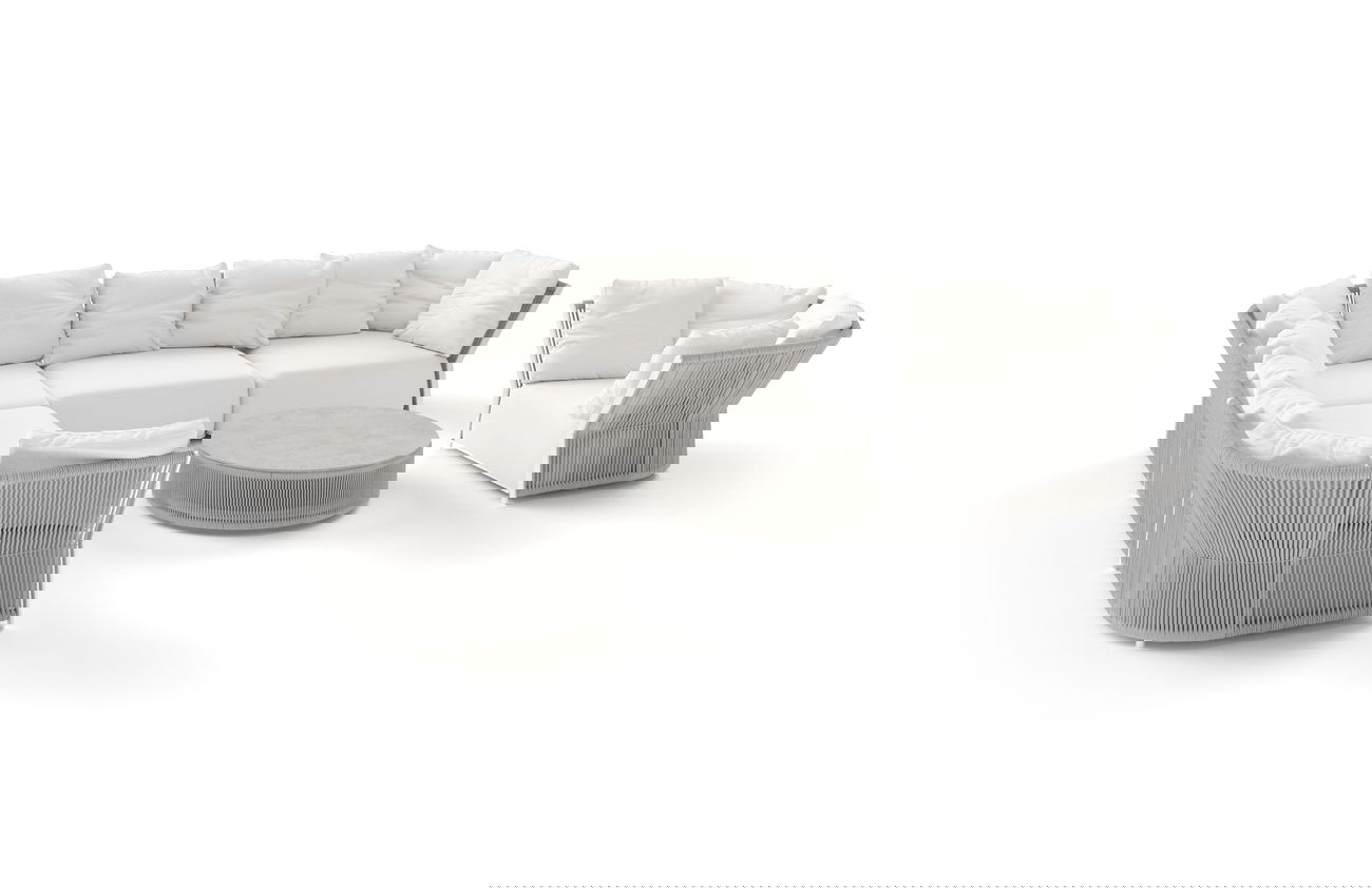 Le Khora Lounge Plus séduit par son design moderne et intemporel. La structure en aluminium thermolaqué d'un blanc élégant assure une base durable et résistante aux intempéries, tandis que le revêtement en corde finement travaillé en gris clair confère aux éléments une légèreté exceptionnelle. Ce détail aérien sur les accoudoirs et les dossiers souligne l'exclusivité et attire tous les regards.