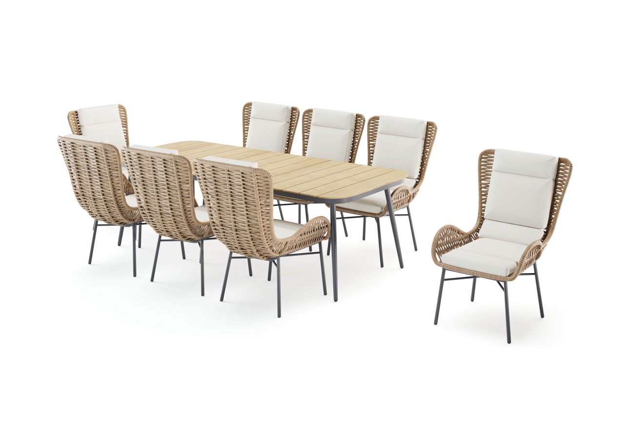 Le set Mistral Dining 8 personnes allie un design élégant et des matériaux de qualité pour des soirées d'été inoubliables en plein air.