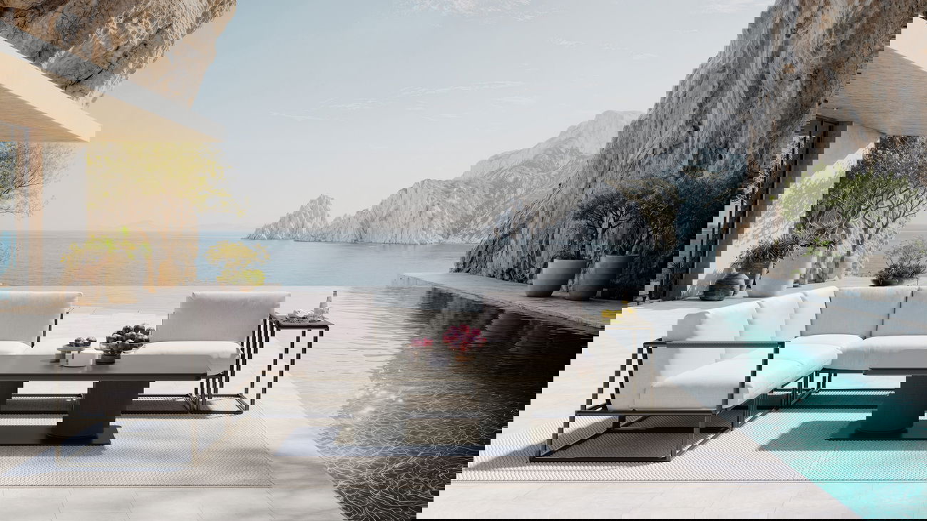 Le salon Verso incarne un design extérieur géométrique et structuré qui s'impose immédiatement par son esthétique cubique précise. La structure en aluminium anthracite dessine des cadres rectilignes et graphiques, dont l'ordre calme et les contours nets créent une élégance moderne et épurée. La construction ouverte transmet une légèreté visuelle et s'intègre naturellement dans les espaces extérieurs les plus variés.